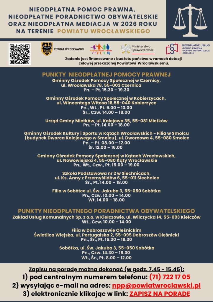 More information about free legal assistance in the Wroclawski County can be found at: